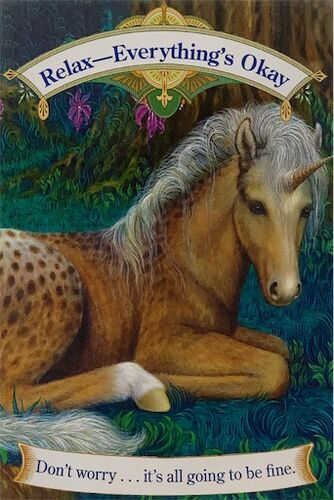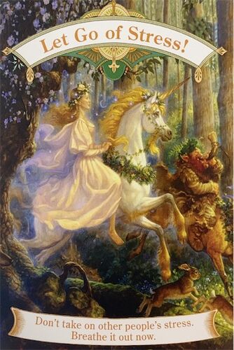 「大声で笑いましょう!」 辛いときに笑うことなんてできないのは当たり前です。笑えるような心の余裕なんてない!と思ってしまうのもわかります。でも、辛いからこそ笑うようにしてみるのも、流れを変える一つの方法かもしれません。 このカードのユニコー…